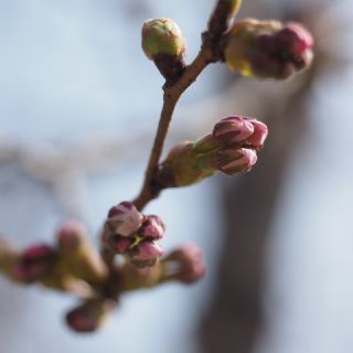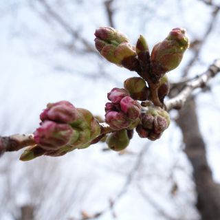 今朝の川沿いの染井吉野のつぼみの様子です。開花までまだ数日はかかりそうです。